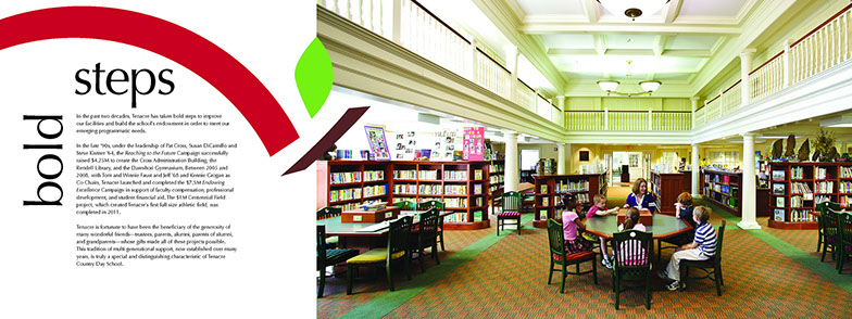 When the Tenacre School launched a 9M dollar capital campaign, they brought in Jeanne to brand the campaign. When the time came to educate and involve the Tenacre community, they hired me to help write the copy for a series of newsletters showcasing ongoing progress and remaining goals.