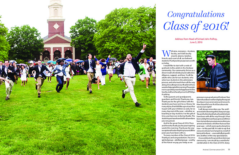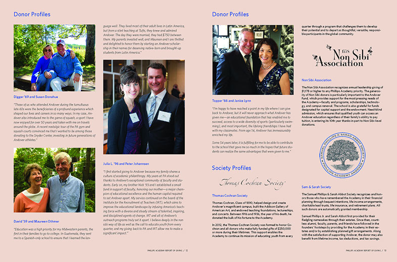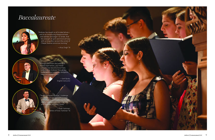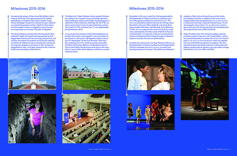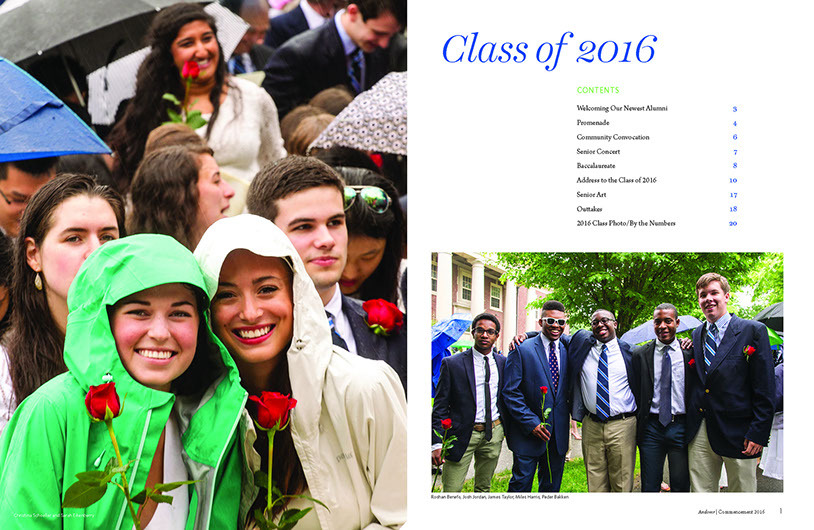 Jeanne and I collborated on designing some of the Phillips Academy Andover's alumni magazines. I appreciated getting a glimpse into this close community of learners—the vibrancy on campus, congenial spirit among students, passion that seems to infuse every classroom, event, and tradition.