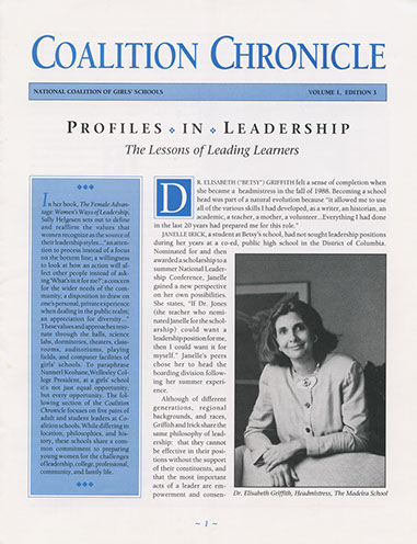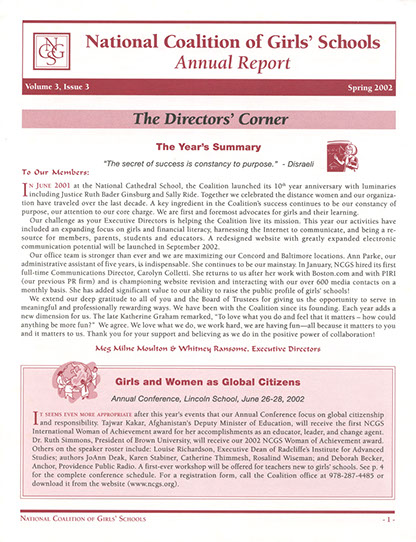 Whitney Ransome hired me to help them launch the newly formed National Coalition of Girls Schools. For fifteen years I designed the publications, including marketing pieces, research findings, informative booklets, instructional guides, member directories and conference material. We sparked a national conversation about the benefits of single-sex education and helped girls schools prosper.